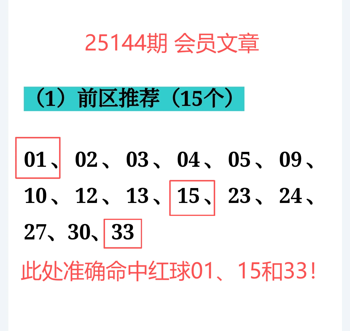 因此,上期免费文章 + 会员文章 + 充电体验卡三方合力,合计命中5枚红球(01、08、15、26、33),同时杀号12码中11个,命中效率提升近7倍,实战表现相当给力!