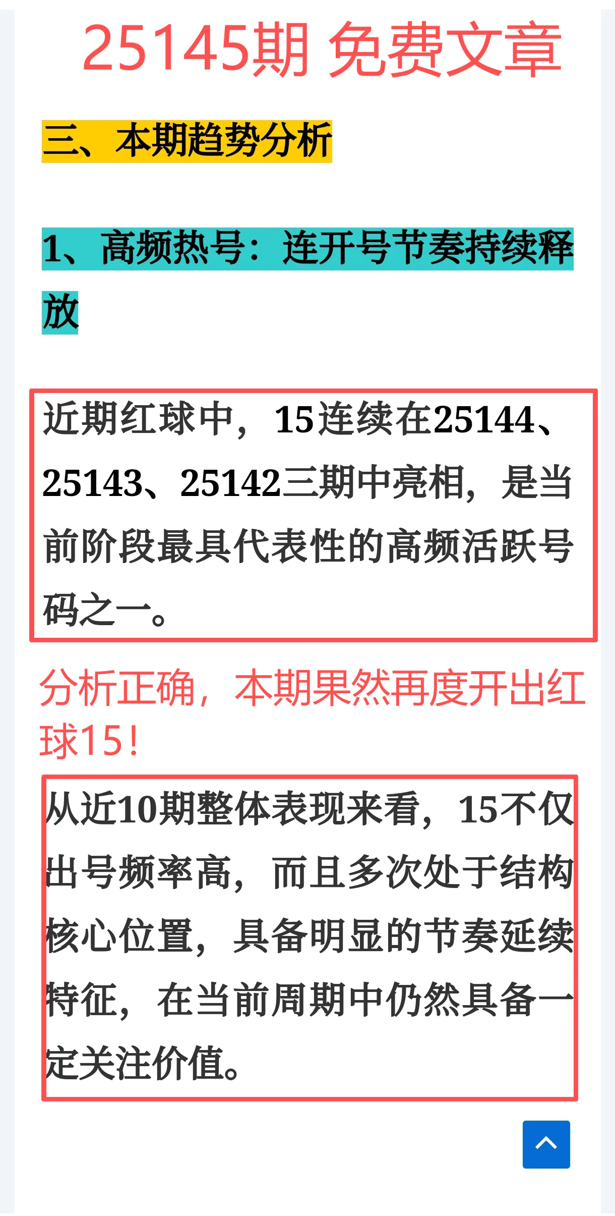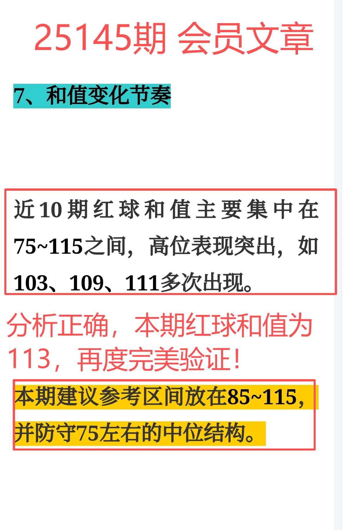高频热号、前区活跃号、连号重复号、红球和值等多项维度分析全部命中要害,再次验证我们对趋势节奏的深度洞察与实战能力!