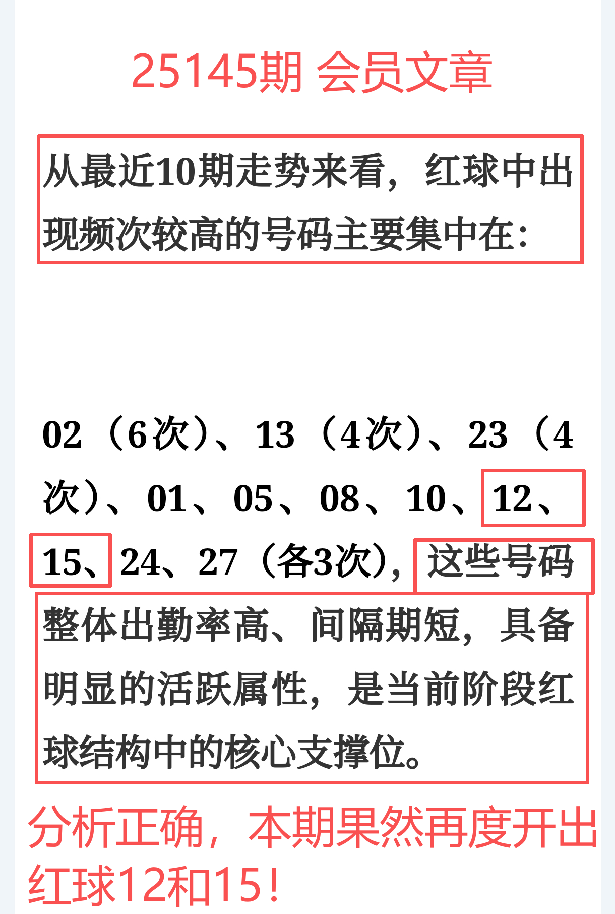 命中红球12与15,双热强袭,两枚重点号联手打穿,充分印证趋势节奏的爆发力!