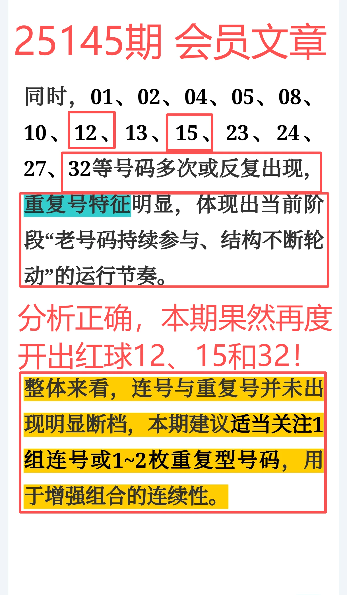 综合来看,上期免费文章 + 会员文章 + 充电体验卡三线联动,共合计命中 4个红球号码(12、15、18、32),再加上杀号命中9个,命中效率提升近6倍,整体表现可圈可点,节奏成果清晰可见!