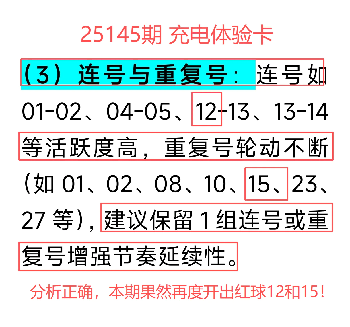 命中红球12、15,连重号一击即中,结构判断再度命中核心,节奏感精确在线!