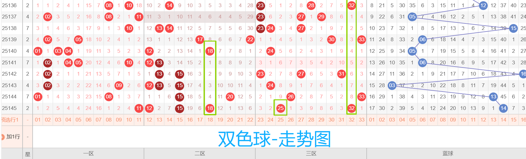 当然,上期开奖号码中再次出现5个大冷号(红球11、18、25、32 + 蓝球14),冷号扎堆,节奏陡变,也给组合策略带来一定冲击。但亲爱的宝子们别着急~